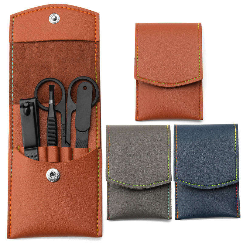 Kit de Uñas Profesional de Acero Inoxidable de Lujo, Incluye Tijeras, Cortaúñas, Lima y Pinzas de Belleza con Estuche de Cuero ANAAIF