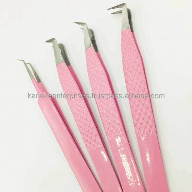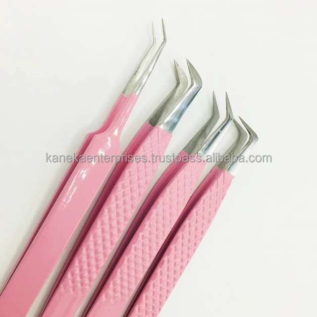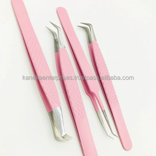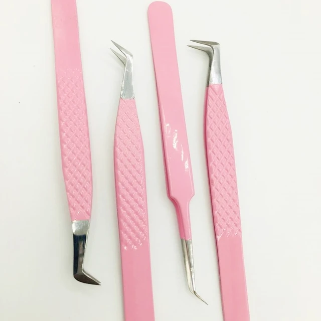 Punta de fibra de acero inoxidable Rosa profesional, pinzas de volumen duraderas antimagnéticas, pinzas de extensión de pestañas de 12-14cm