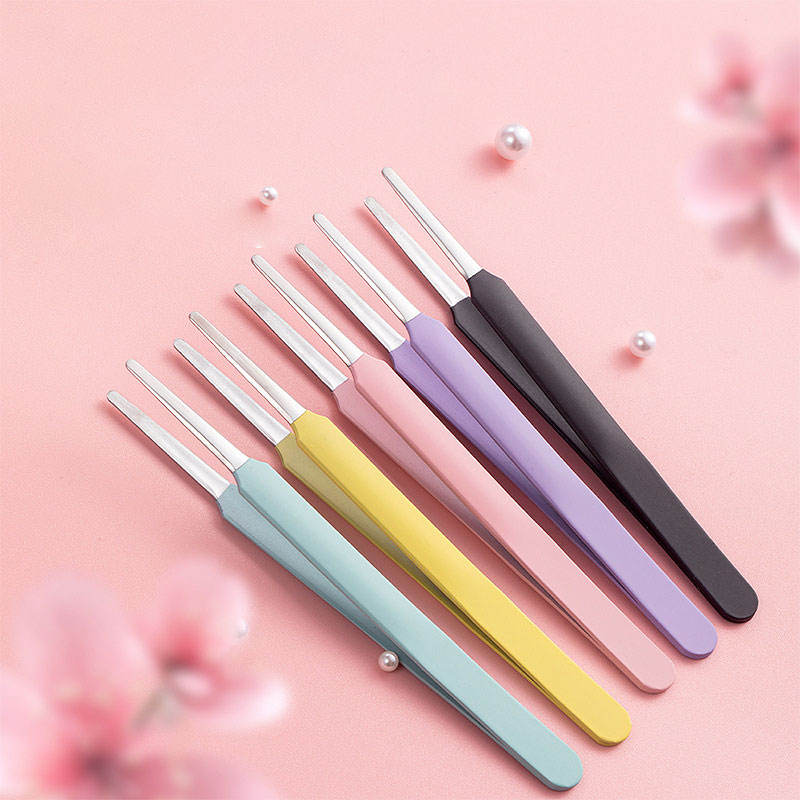 Pinzas Profesionales de Acero Inoxidable con Punta Inclinada Personalizables para Manualidades Infantiles y Uso en Mascarillas de Pestañas