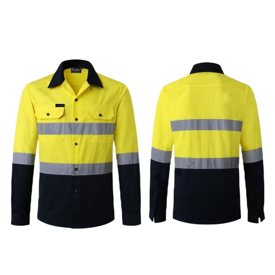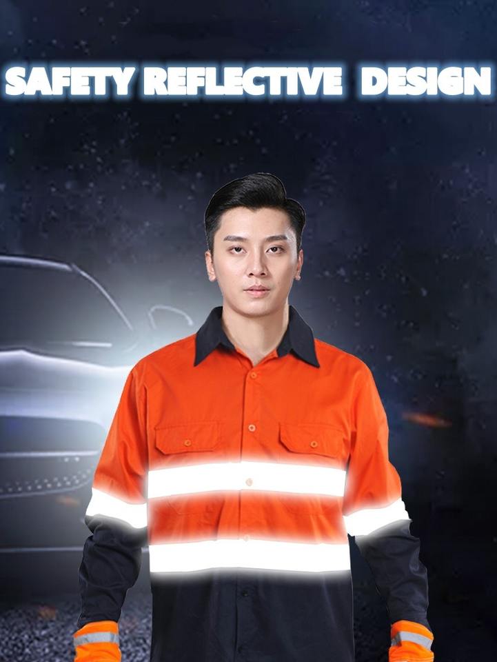Camisa de Trabajo Profesional de Seguridad Color Naranja para Hombre, 100% Algodón Transpirable y Talla Grande, Reflectante
