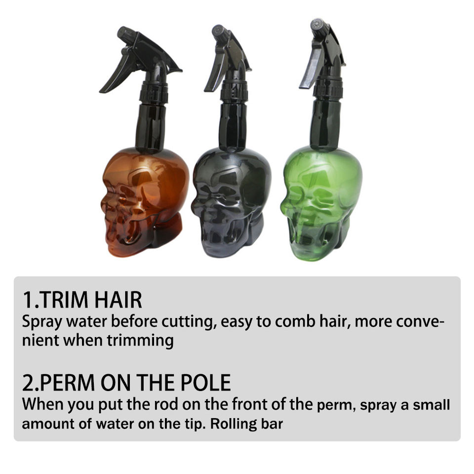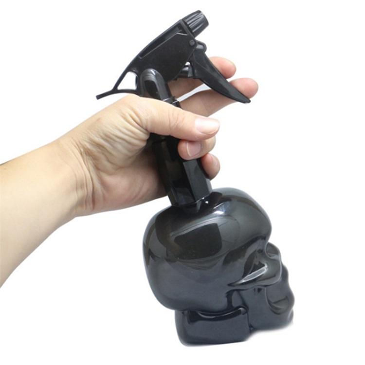 Salón profesional Patrón de calavera de plástico vacío Botellas 500ml de agua Niebla continua fina Botella de spray ajustable Logotipo personalizado