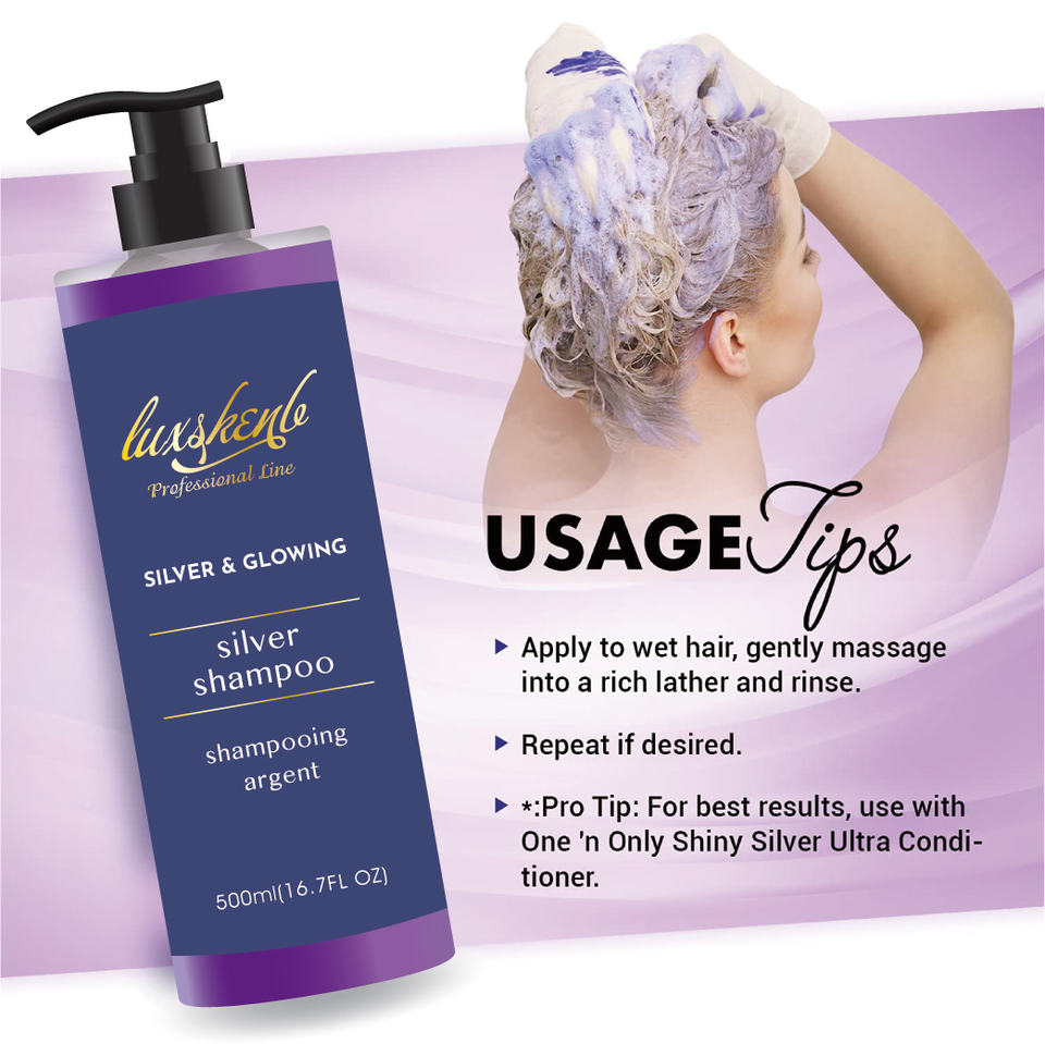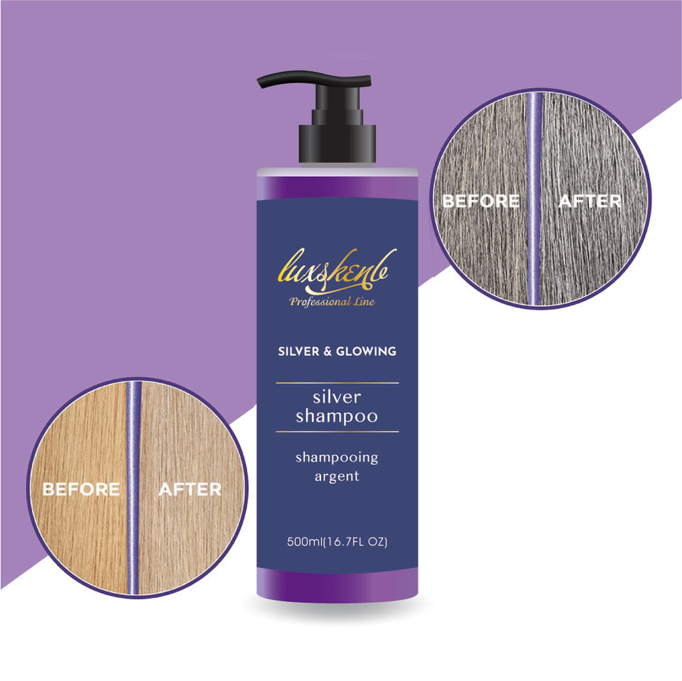 Calidad de salón profesional Eliminar amarillo Perfeccionador Tinte para el cabello rubio Champú azul Aceite marroquí natural Champú púrpura violeta