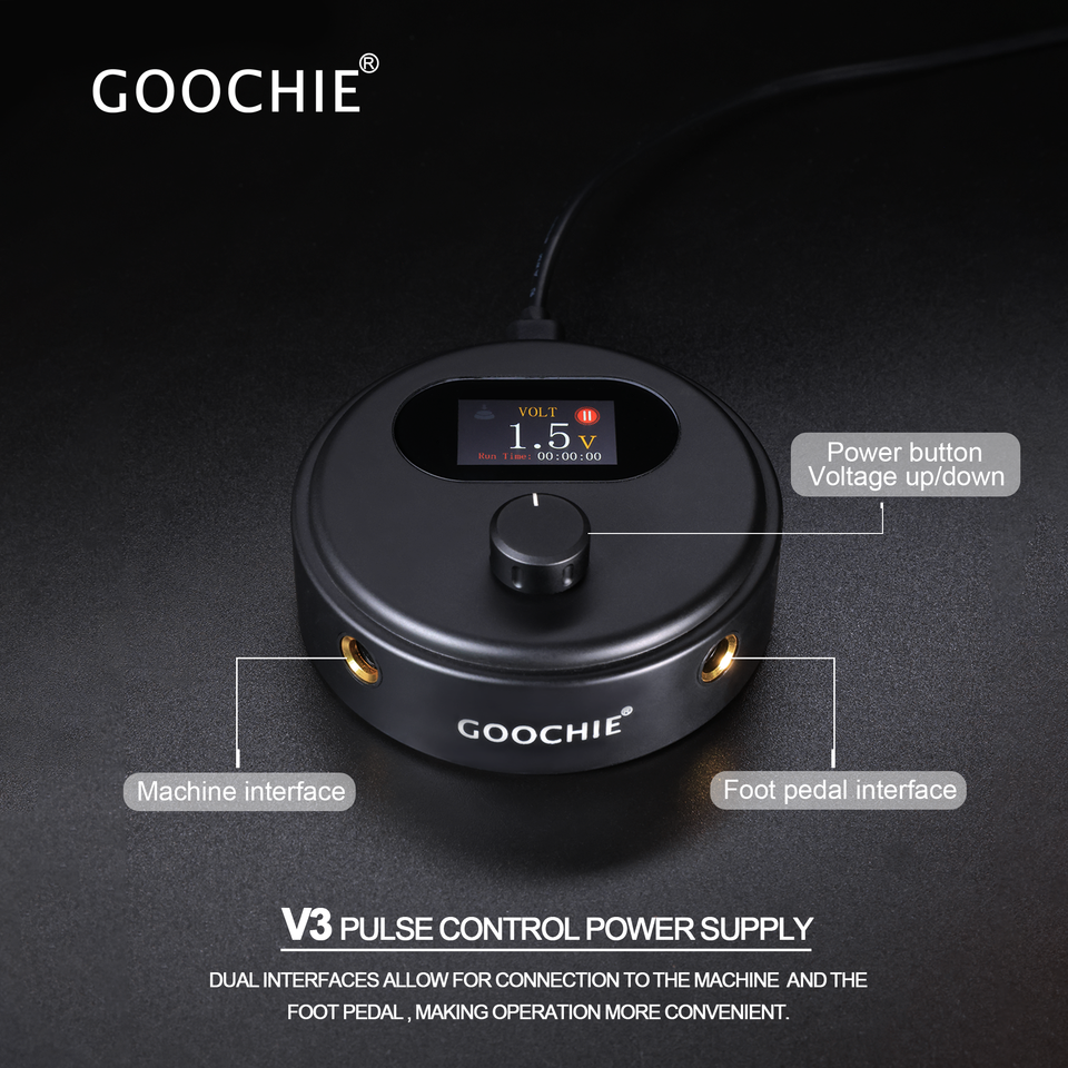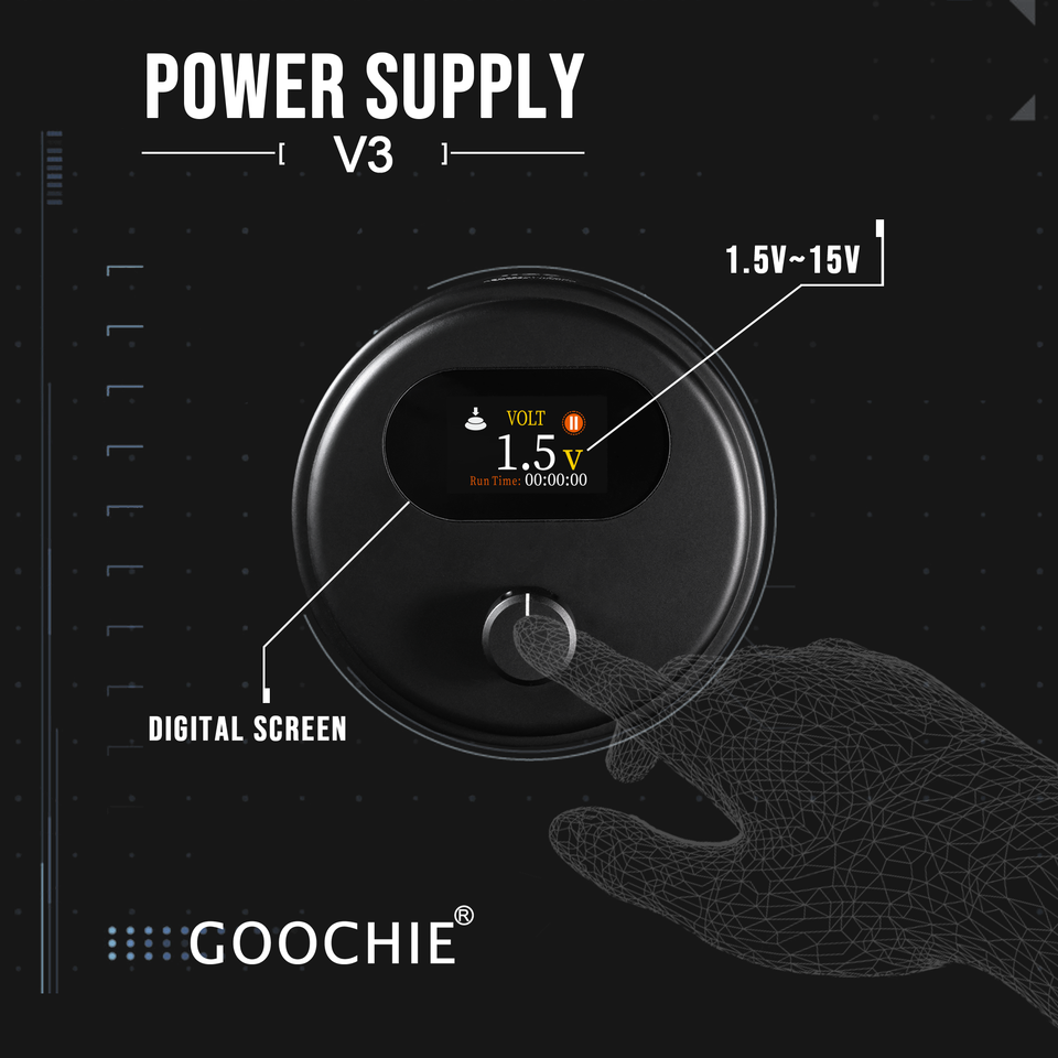 Fuente de Alimentación para Máquina de Tatuaje Eléctrica GOOCHIE V3, 1.5v-15v, Aluminio de Aviación, Ligera, para SMP PMU