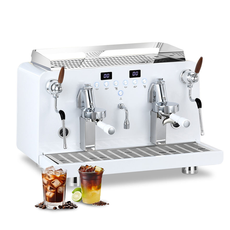 Máquina de Espresso Comercial Profesional Semiautomática Eléctrica de Doble Cabezal de Acero Inoxidable, Capacidad de 12L, Presión de 9 Bares, Silenciosa