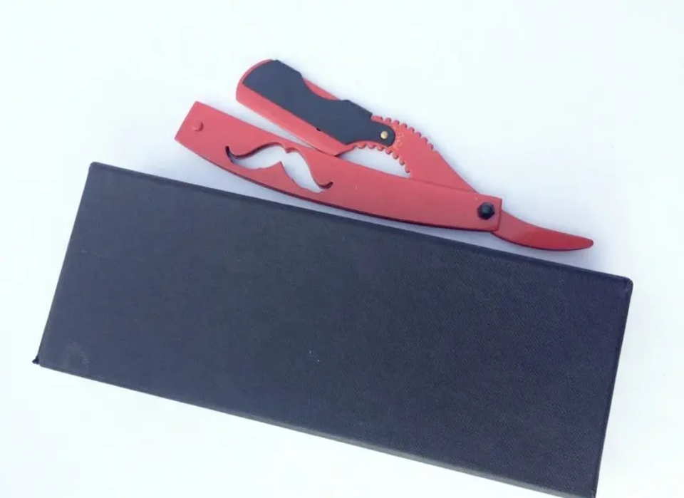 Navaja de Afeitar Profesional con Mango de Diseño para Bigote, Navaja de Afeitar Recta de Acero Inoxidable para Barbería