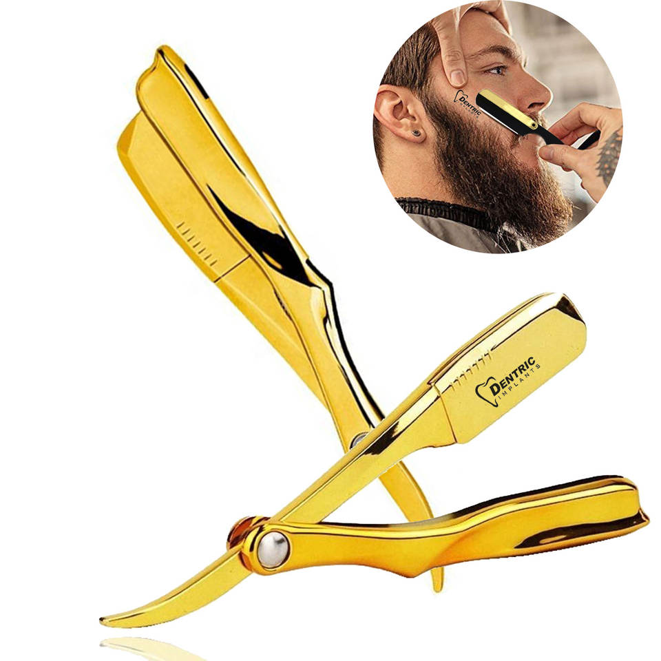 Navaja de Barbero Profesional Plegable de un Solo Filo para Hombre, Acero Inoxidable, Cuchillas Reemplazables, Marca DENTRIC IMPLANTS, Modelo DI-SR2510