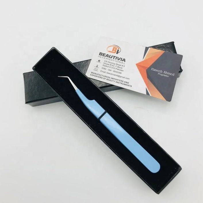 Pinzas profesionales para pestañas de acero inoxidable con ángulo de 45 grados, extensión de pestañas de Color cielo, punta de volumen, agarre fuerte, punta fina