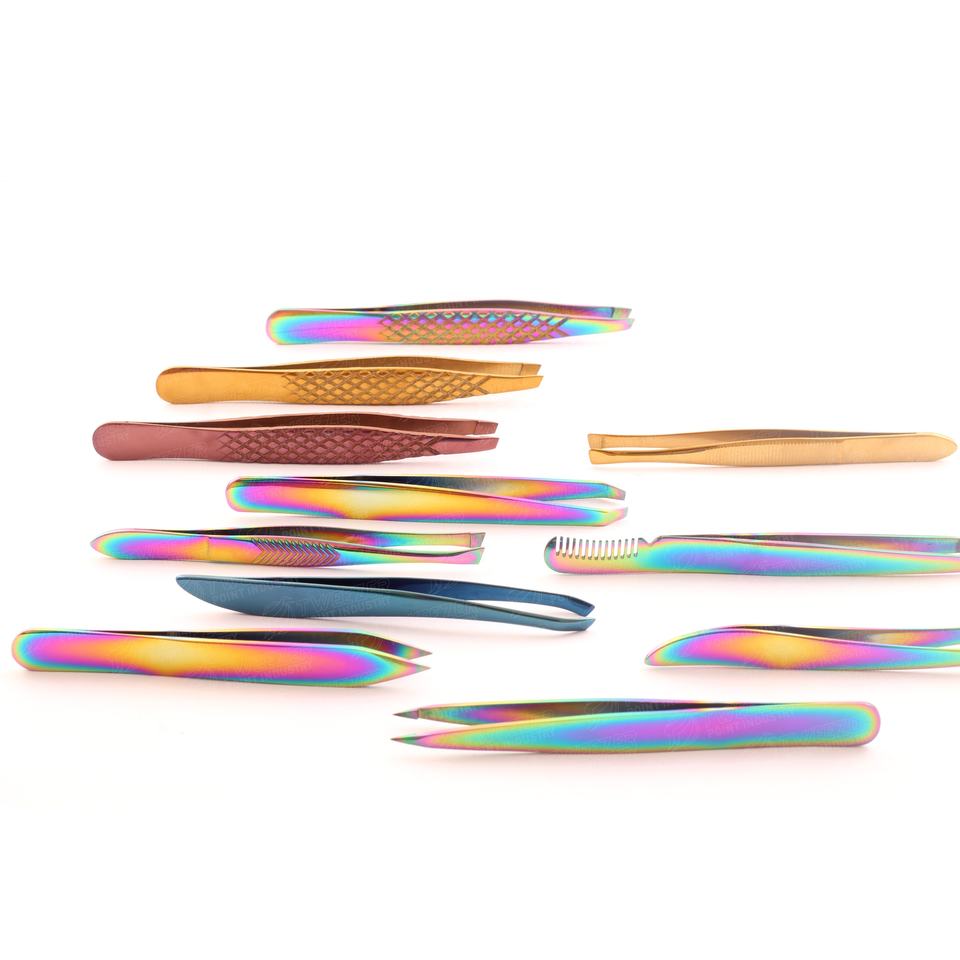 Herramienta de maquillaje para depilación de Punta inclinada profesional, venta al por mayor de fábrica, pinzas para cejas de acero inoxidable personalizadas con etiqueta privada