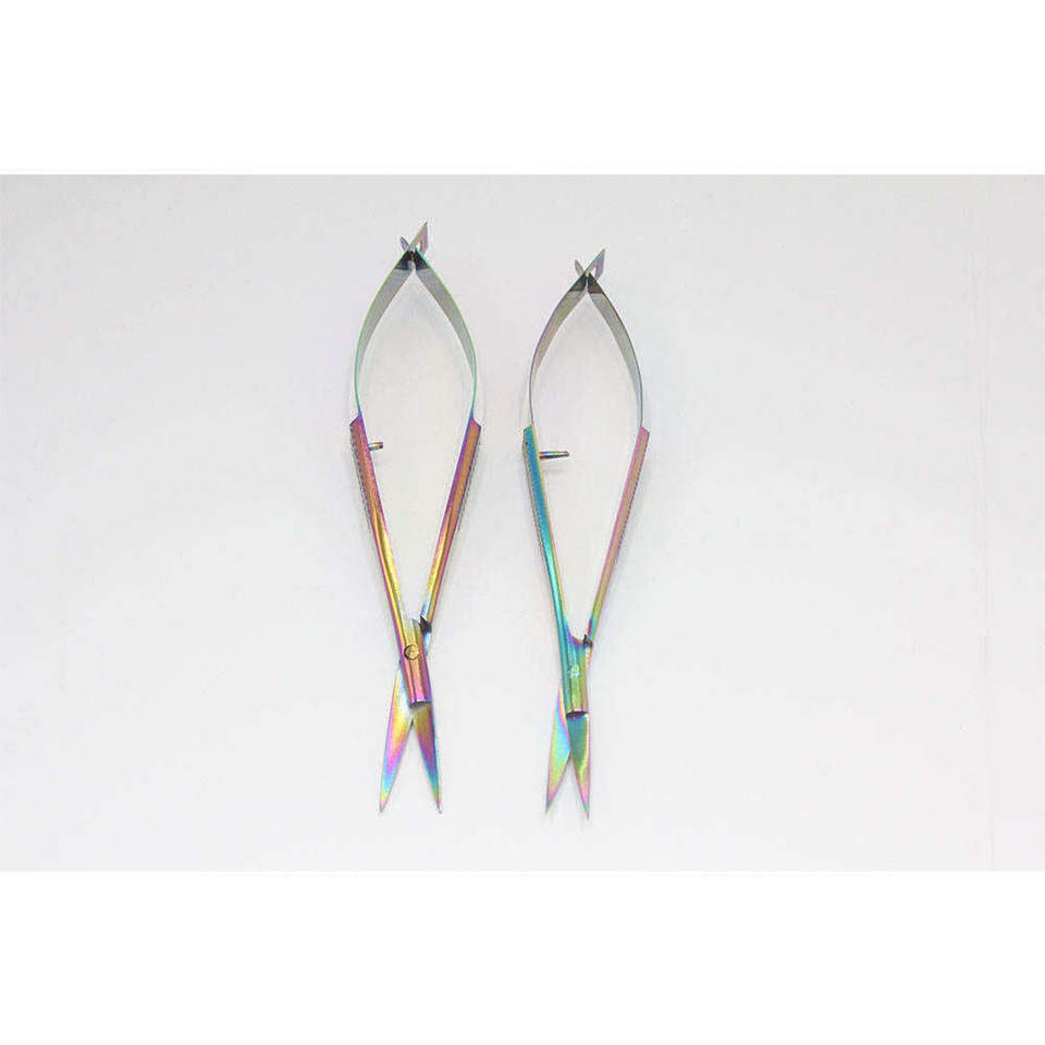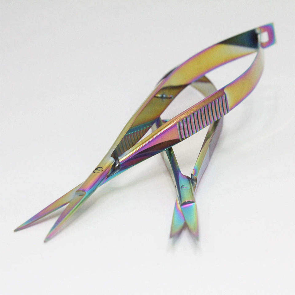 Professional Stainless Steel Curved Blade Spring Scissors Sharp Tip Precision Cuticle Eyebrow Trimming Right-Handed Steel Handle