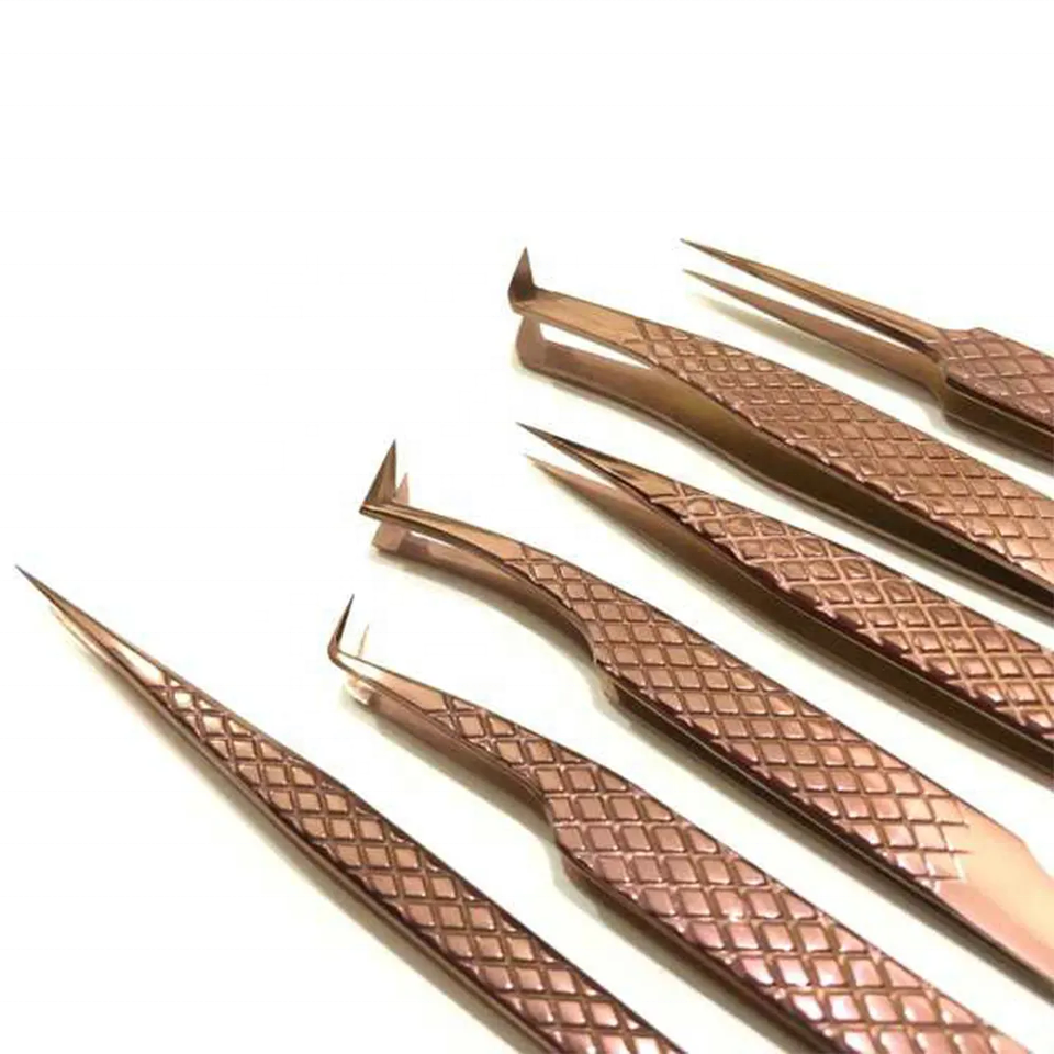 Curvo, Pinzas de pestañas de volumen, Fabricado a máquina, Personalizado, artesanal, Punta puntiaguda, Pinzas del ESDTipo