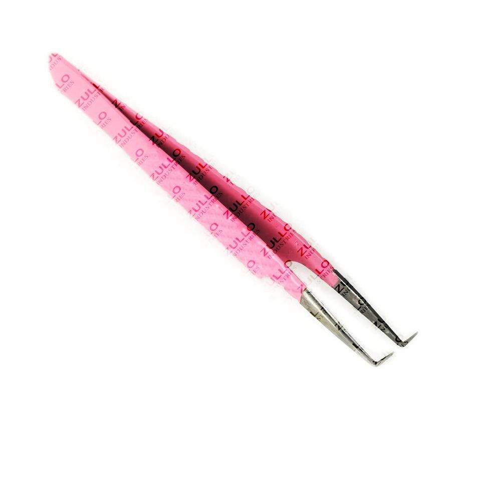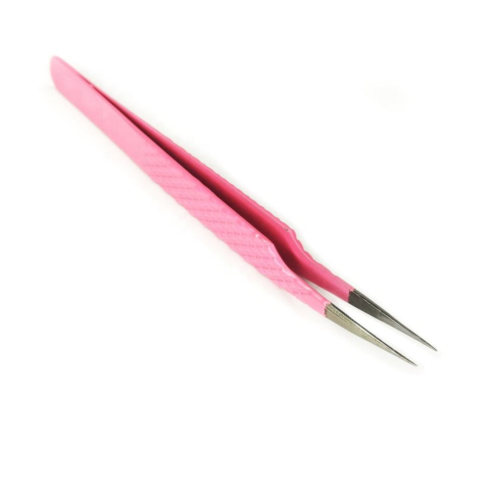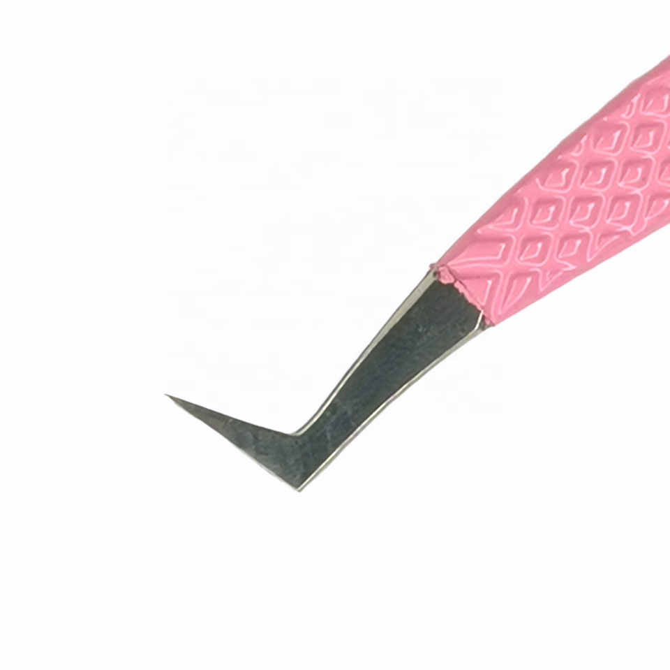 Juego de pinzas profesionales para extensión de pestañas de acero inoxidable, Punta puntiaguda inclinada recubierta de polvo rosa, calidad OEM