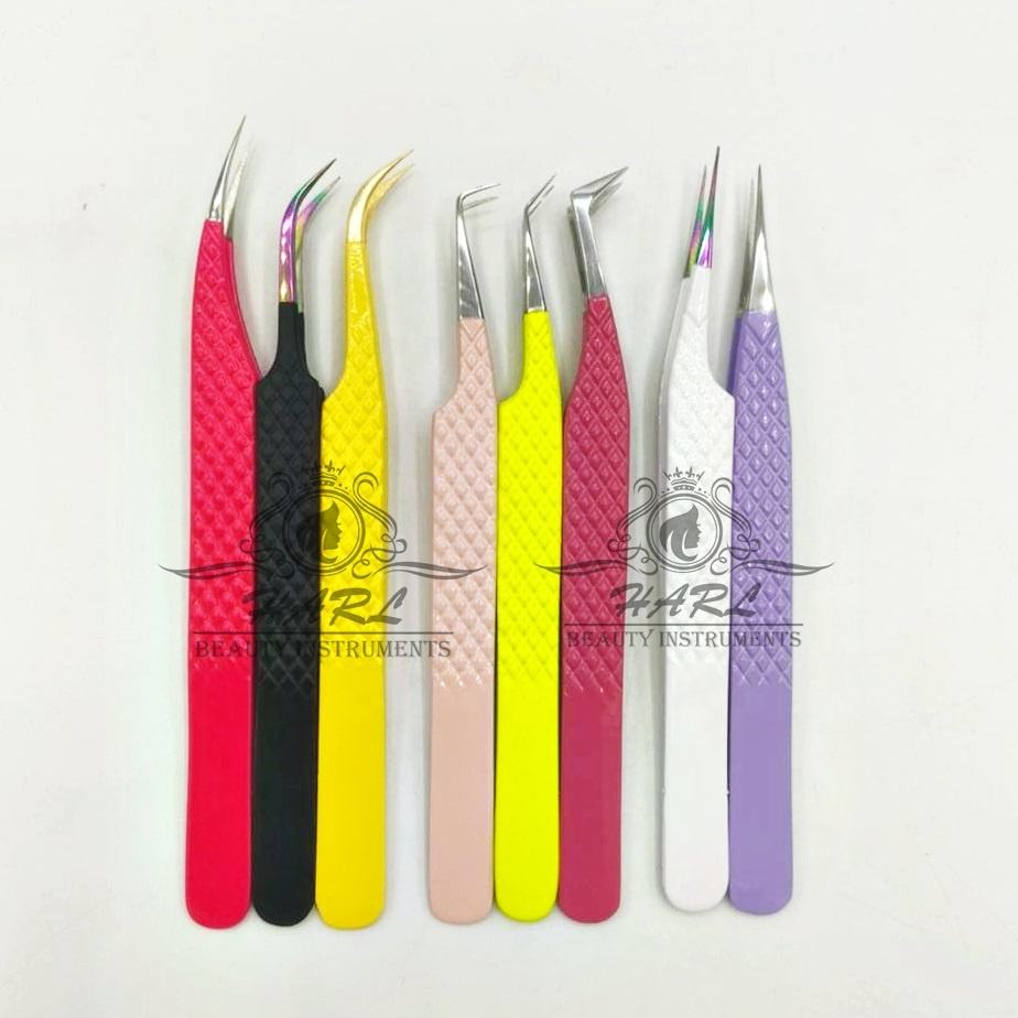 Pinzas profesionales para pestañas de acero inoxidable, punta de fibra de volumen de Color personalizado antimagnético de 45/90 grados para pestañas