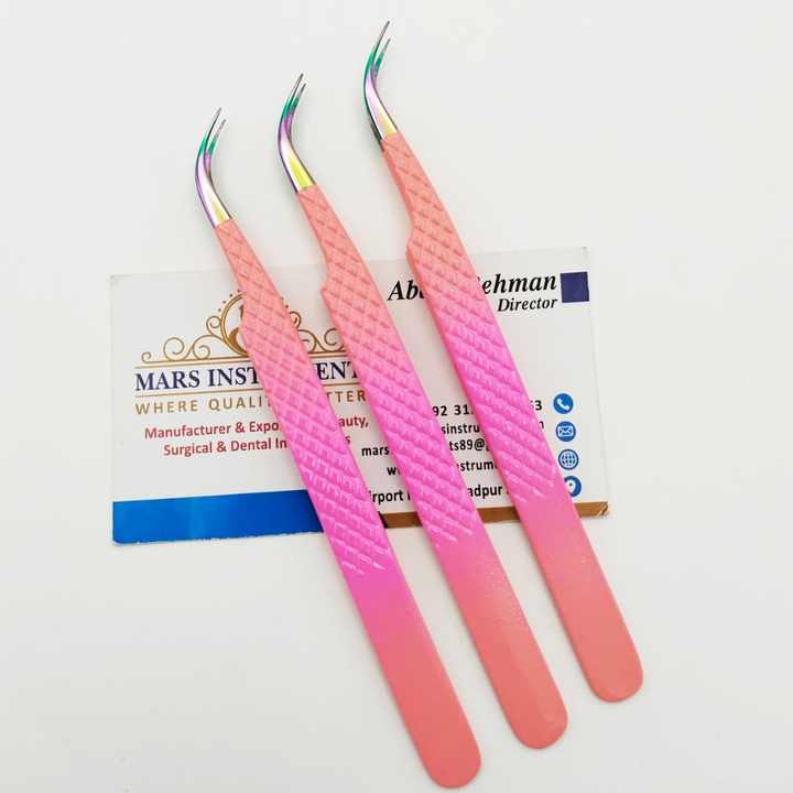 Pinzas de extensión de pestañas de Color Rosa degradado con punta multicolor individual curvada de aislamiento de acero inoxidable profesional privado