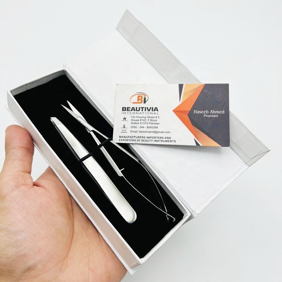 Pinzas Profesionales para Cejas de Acero Inoxidable, Ligeras y Duraderas, con Punta Inclinada, Juego de Tijeras, Espejo Pulido, Depilación de Cejas