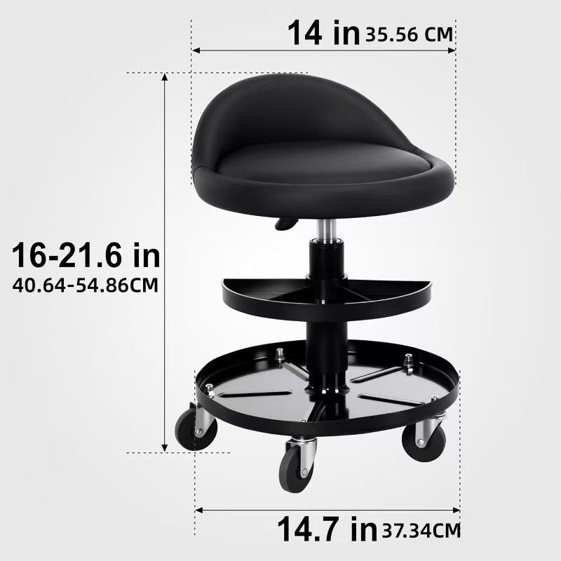 Taburete Giratorio Profesional de Acero Inoxidable, Asiento Rodante Ajustable para Mecánico de Garaje, para Escuela y Hospital