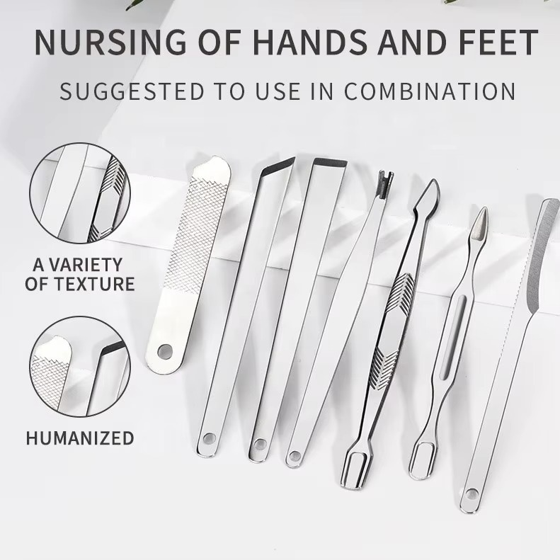 Juego Profesional de Instrumentos de Acero para Podología, 8/16 Piezas, Kit de Manicura y Pedicura con Reparación Profunda y Resorte Giratorio