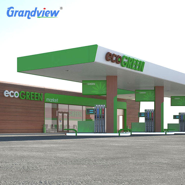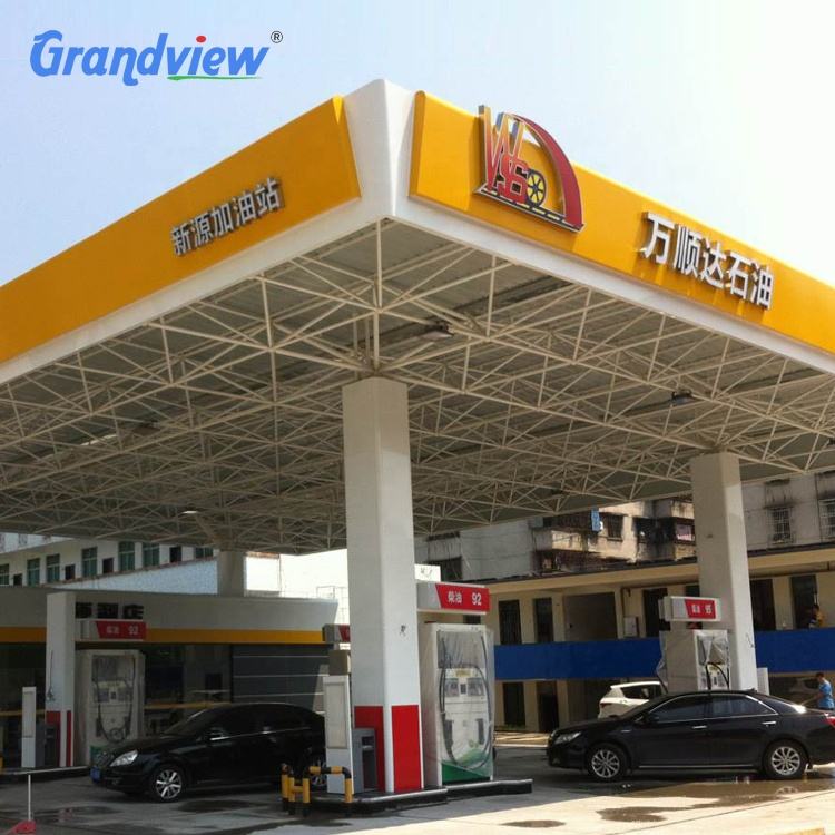 Estructura estructural de acero profesional, marco de espacio prefabricado, estación de gasolina de llenado, dosel, techo, construcción, bomba de combustible, estación de gasolina