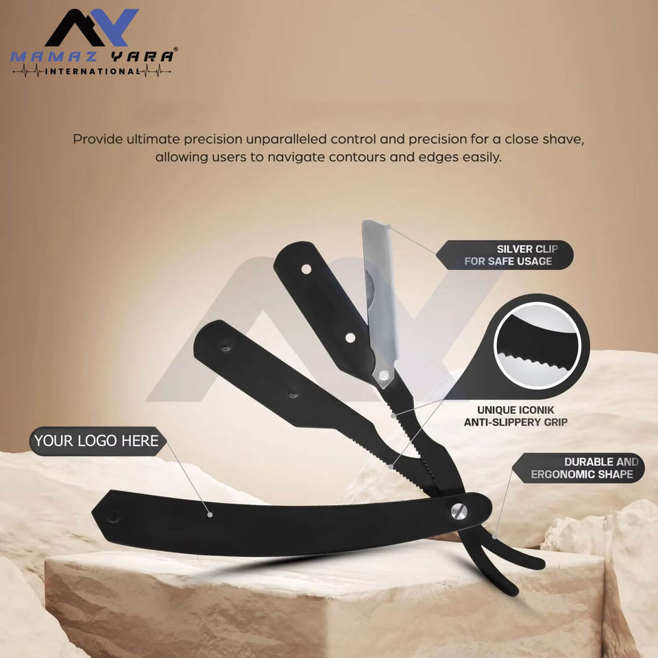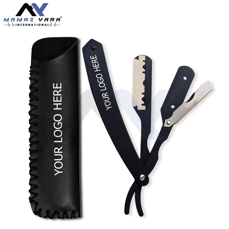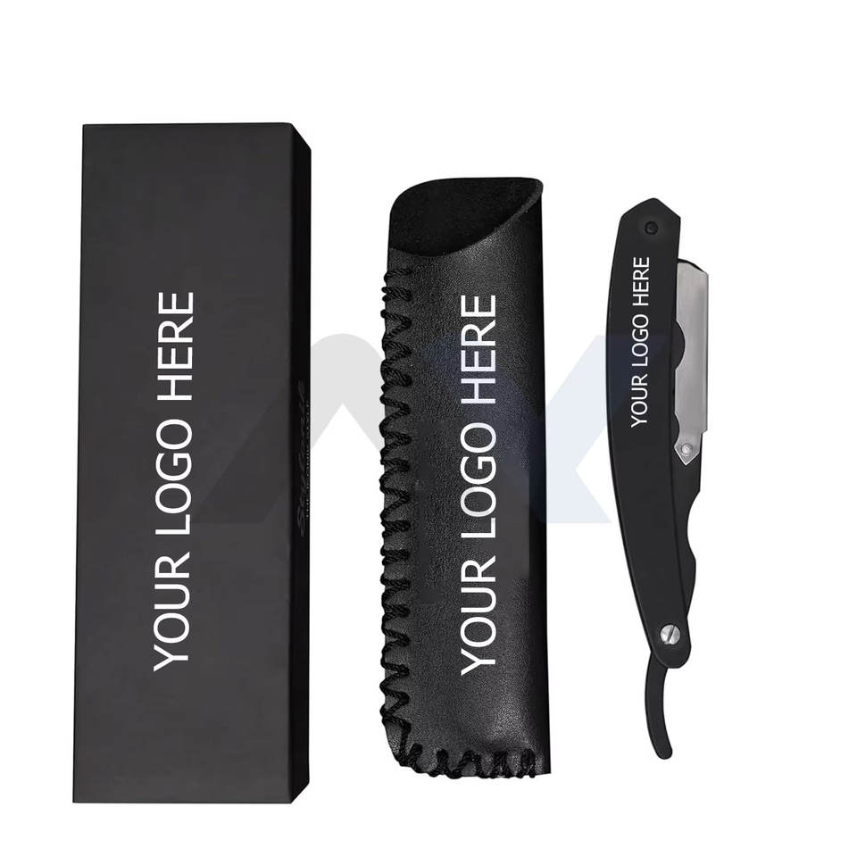 Navaja de Afeitar Profesional de Hoja Recta para Hombres y Mujeres, Personalizable, con Estuche de Cuero, Plegable, para Barbería