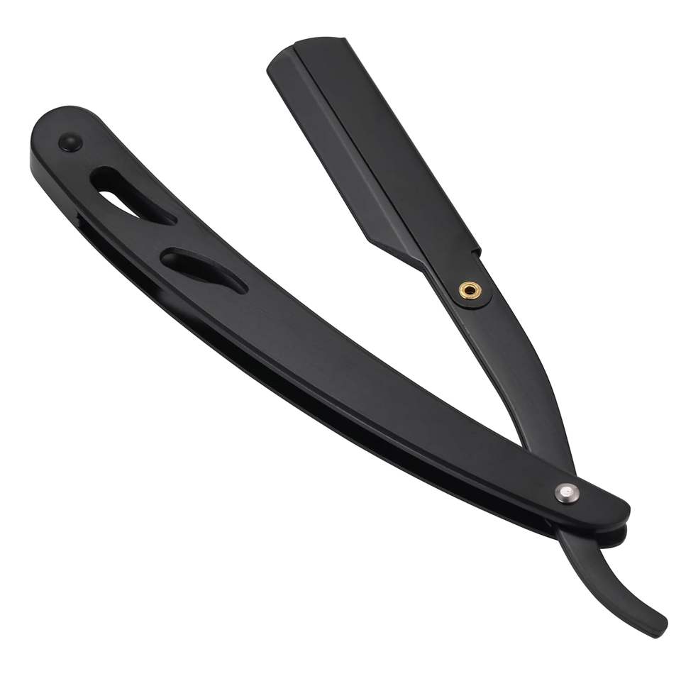 Maquinilla de afeitar recta profesional para hombre, maquinilla de afeitar Manual, afeitadora de pelo, mango de plástico de acero inoxidable plegable negro antiguo