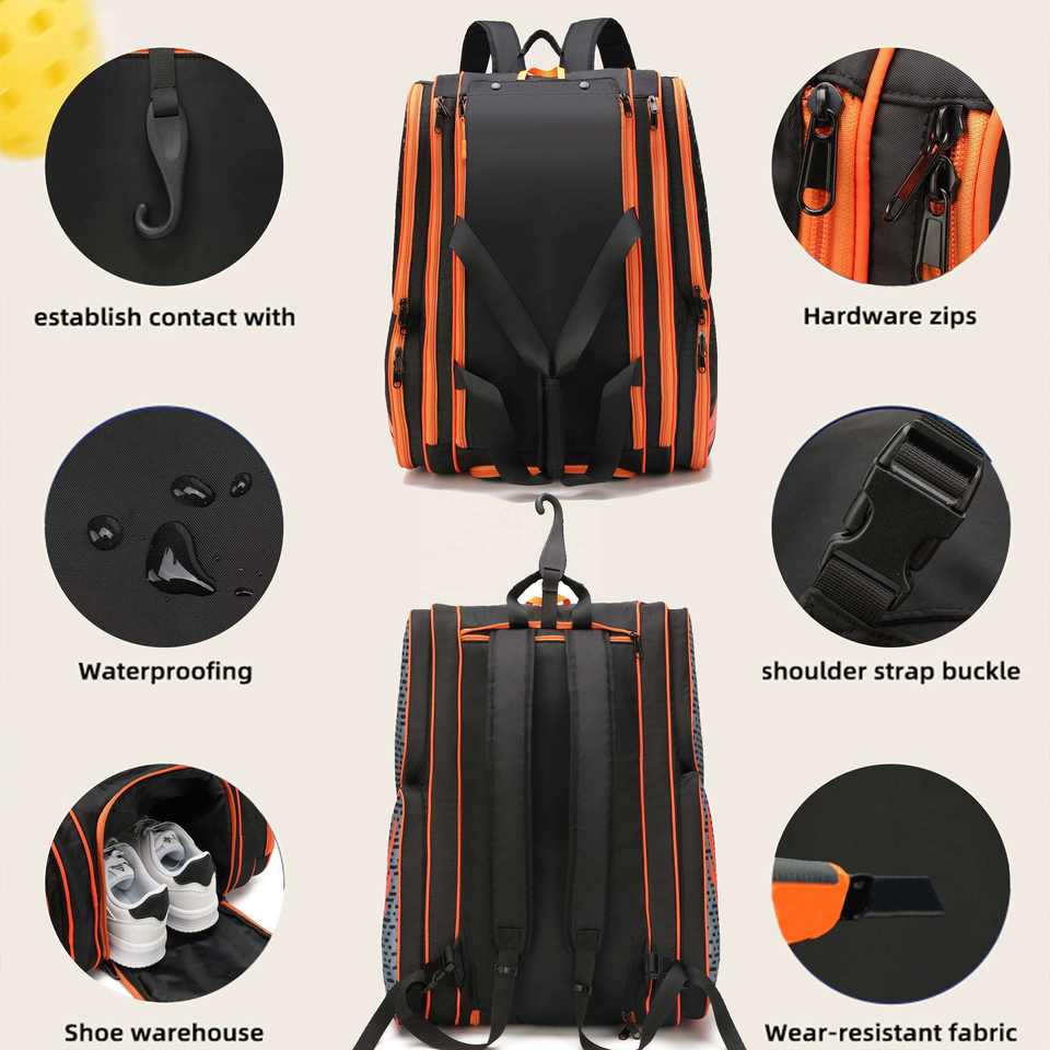 Mochila Profesional de Tenis de Gran Capacidad para 6 Raquetas con Compartimento Separado para Zapatos, Ideal para Torneos