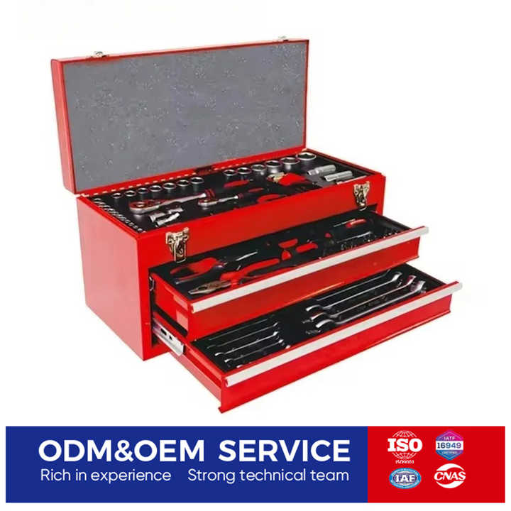 Juego de Herramientas Profesional con Caja de Herramientas Metálica de 3 Cajones, Llave de Trinquete, Llave de Tubo, Alicates para Reparación de Automóviles y Bricolaje