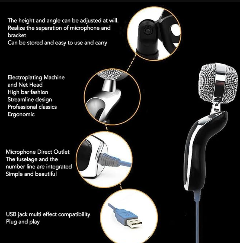 Micrófono de Condensador USB Profesional - Para Juegos, Computadora y Conferencias, Cableado, Ligero y Portátil