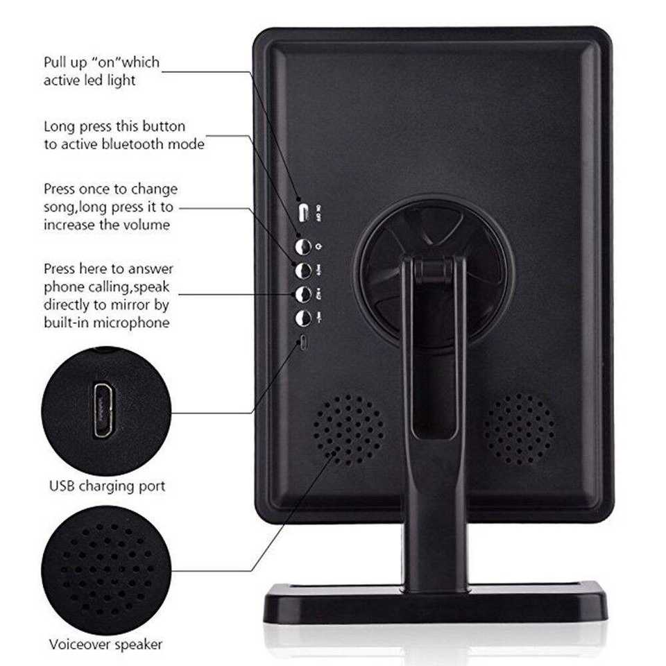 Nombre del producto:Espejo de Maquillaje con Luces LED y Bluetooth para Música