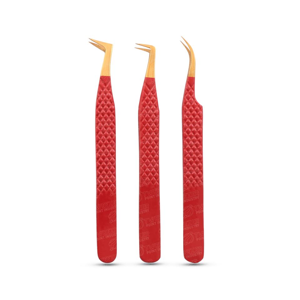 Pinzas profesionales para extensión de pestañas de alto volumen Punta de fibra de acero inoxidable con agarre de diamante y Mango antideslizante