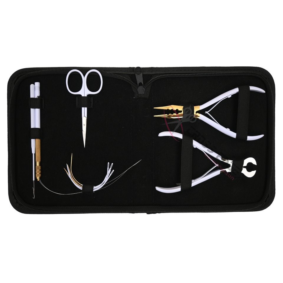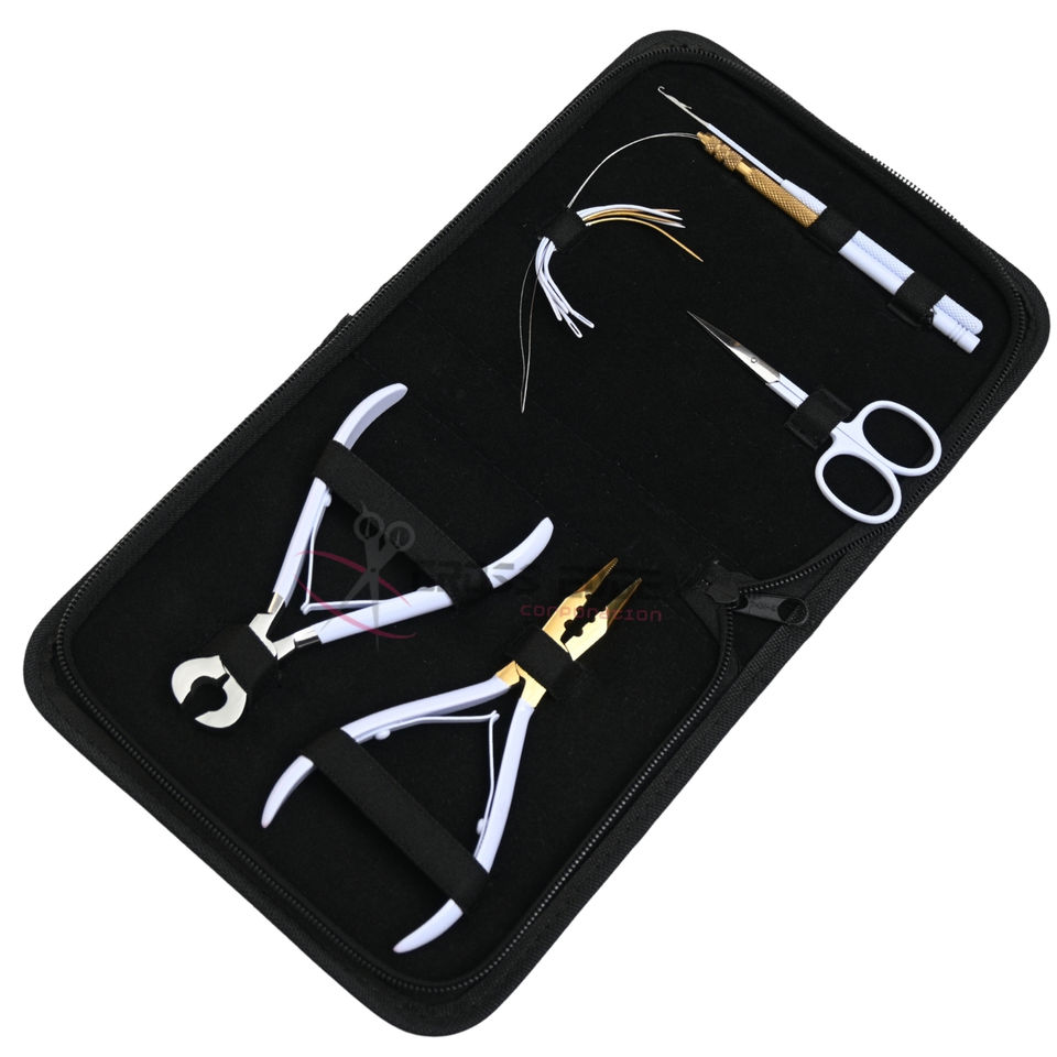Professional White Hair Extension Tools Kit with Crimping Plier