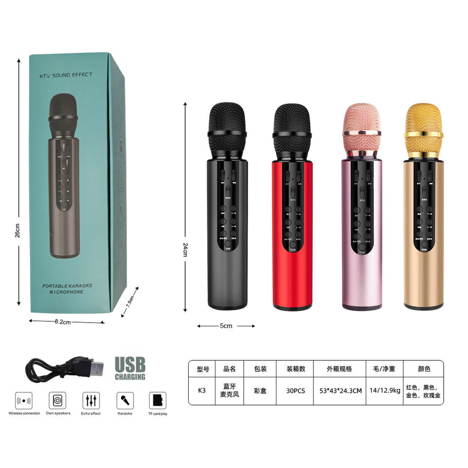 Función:Cancelación de ruido, Luz peso, Micrófono de condensador, Portátil, Voz original eliminada, Efectos de voz mágicos