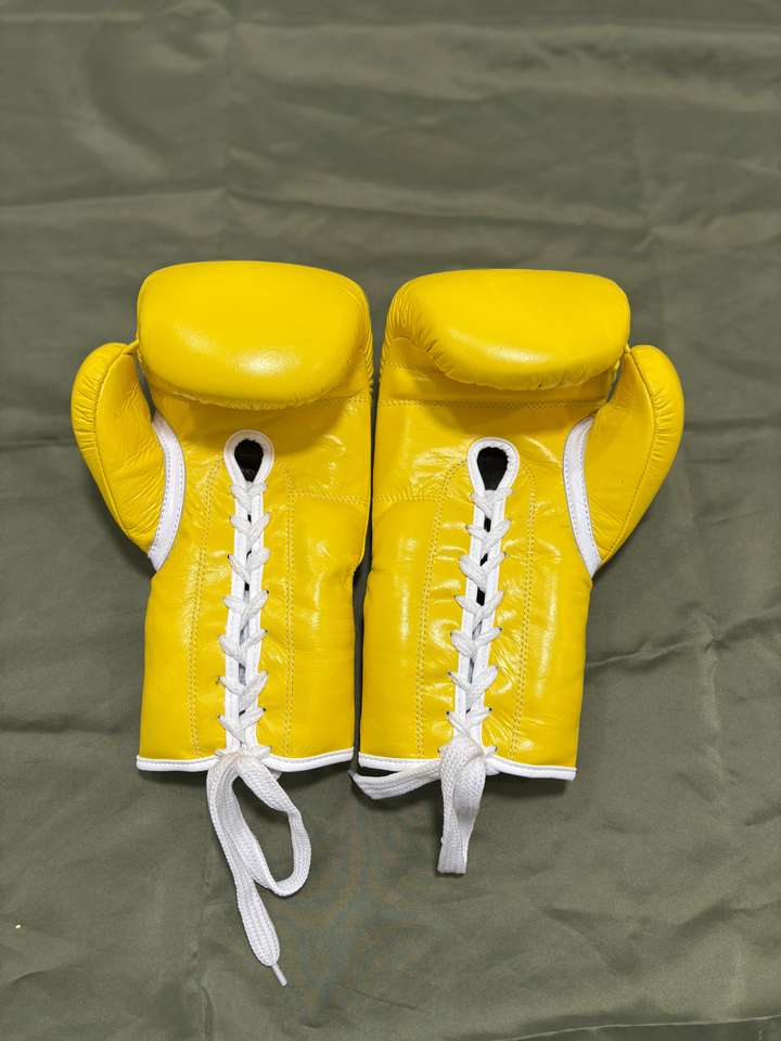 Guantes de Boxeo Profesionales de Piel de Vacuno Genuina Amarilla, con Cordones, Impermeables, de Secado Rápido, Transpirables, de Alta Calidad