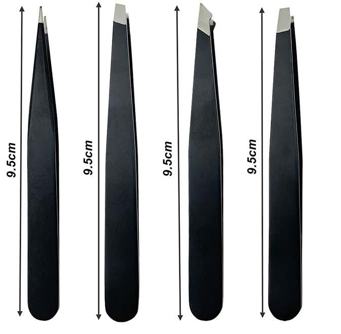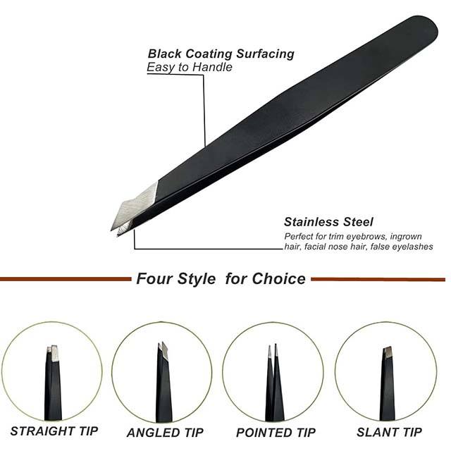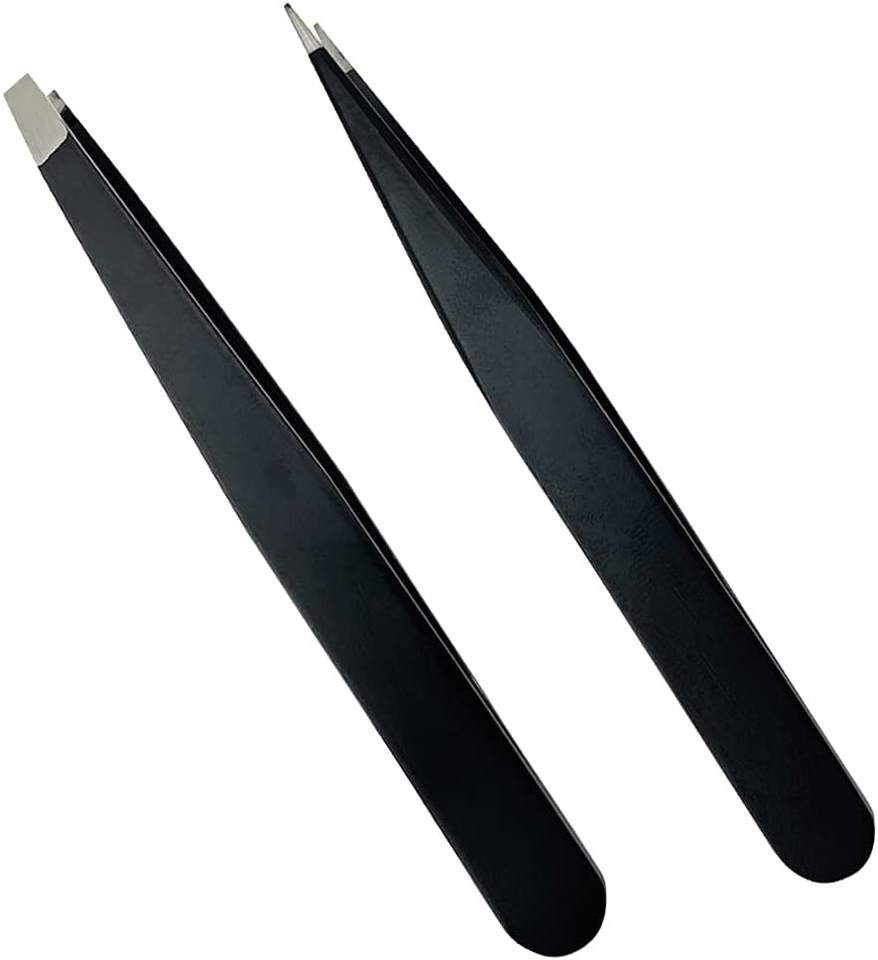 Juego de 2 pinzas profesionales para cejas de color negro, pinzas para cejas de acero inoxidable con pinzas de Punta inclinada y puntiaguda de LCI
