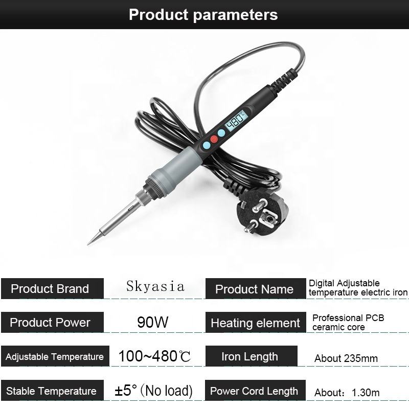 Kit de Soldadura Profesional con Control de Temperatura Digital LCD, Mango Tipo Lápiz, 90W de Alta Potencia, para EE. UU./UE/Reino Unido, 100-240V CA