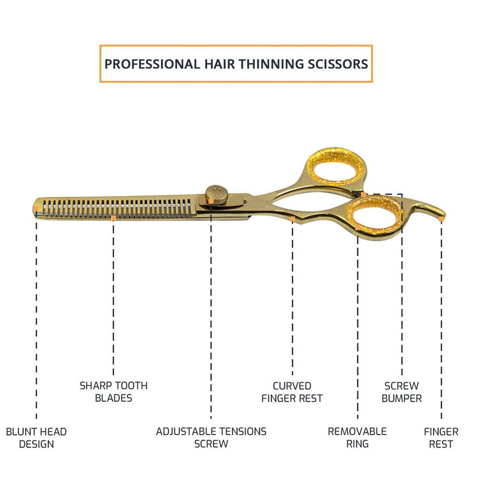 Tijeras profesionales afiladas para adelgazar el cabello, tijeras para el cabello con esmalte dorado