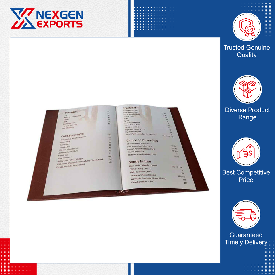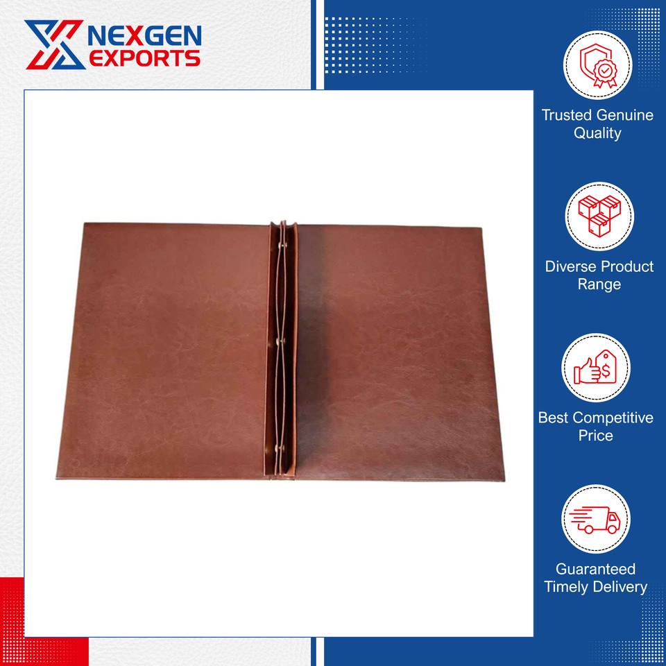 Carpeta de Menú de Restaurante de Cuero PU de Lujo Moderno de Nexgen Exports con Logotipo Personalizado en Relieve, Impresión y Opciones OEM/ODM