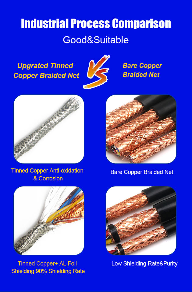 Outer Shield:Overall Foil +Tinned Copper Braid