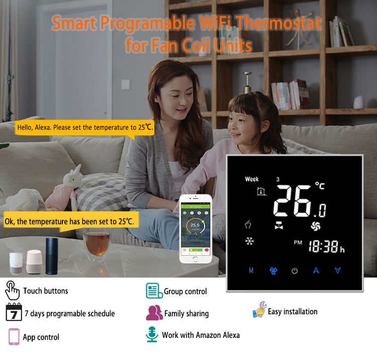 Termostato inteligente wifi para aire acondicionado, controlador de temperatura Programable con pantalla LCD