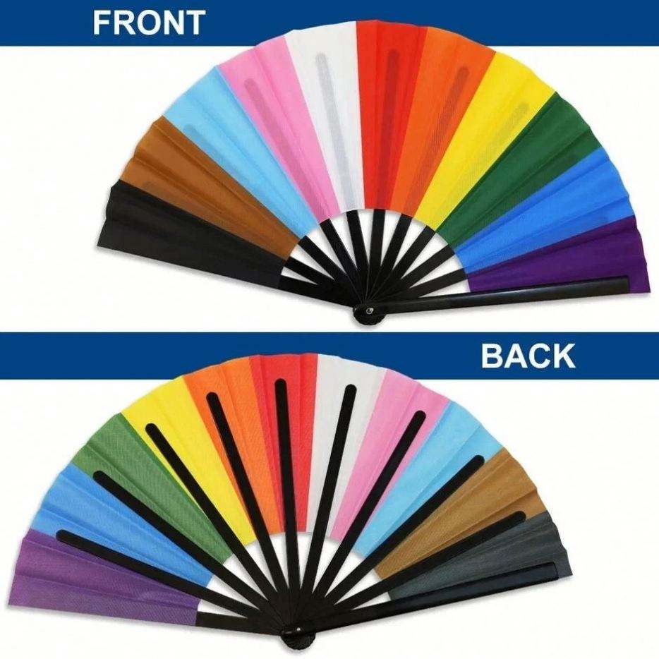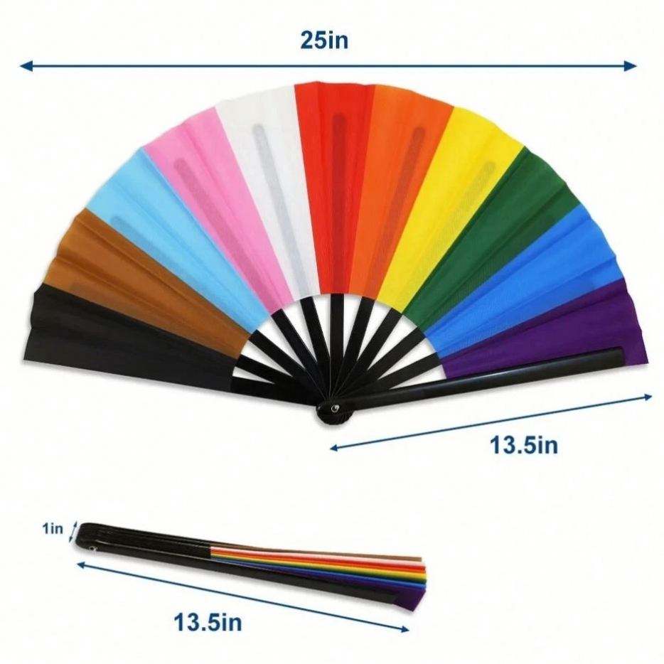 Abanico de Mano Progress Pride, Abanico Inclusivo con el Arcoíris del Orgullo LGBT, Talla XL