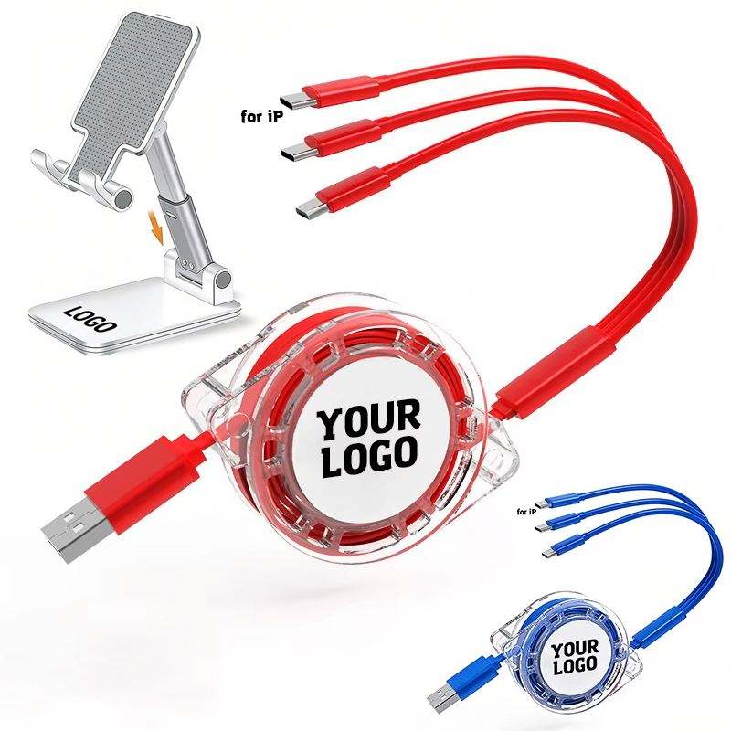 Cargador Portátil Retráctil 3 en 1 con Logotipo Personalizado al por Mayor de Fábrica, Cable de Datos USB de Carga Rápida para iPhone y Android
