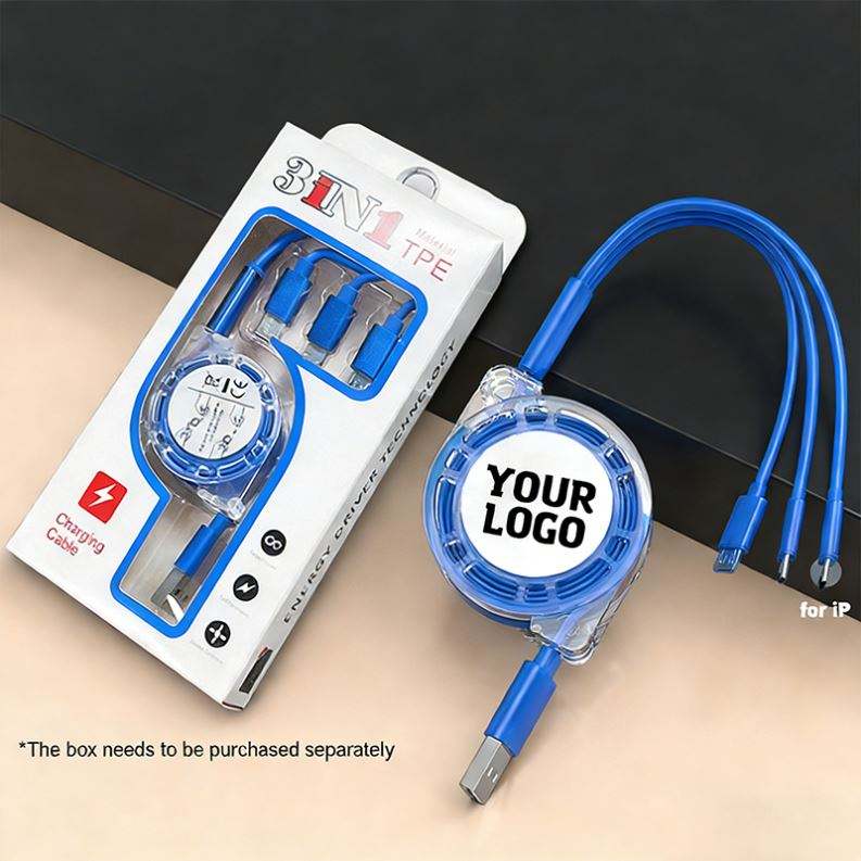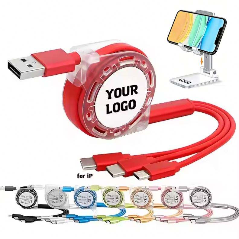 Cable de Carga Rápida USB Retráctil 3 en 1 Universal con Logotipo Personalizado al por Mayor, Cable USB Retráctil de Carga Rápida