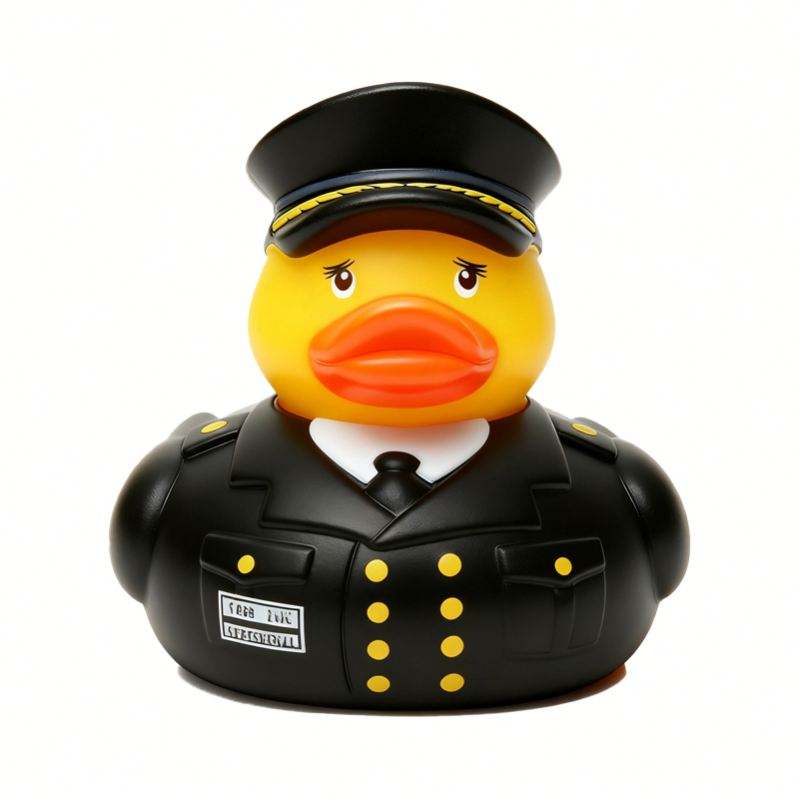 Juguete Promocional Personalizado, Patito de Goma de PVC con Diseño de Policía para Bañera, con Estampados Aplicados