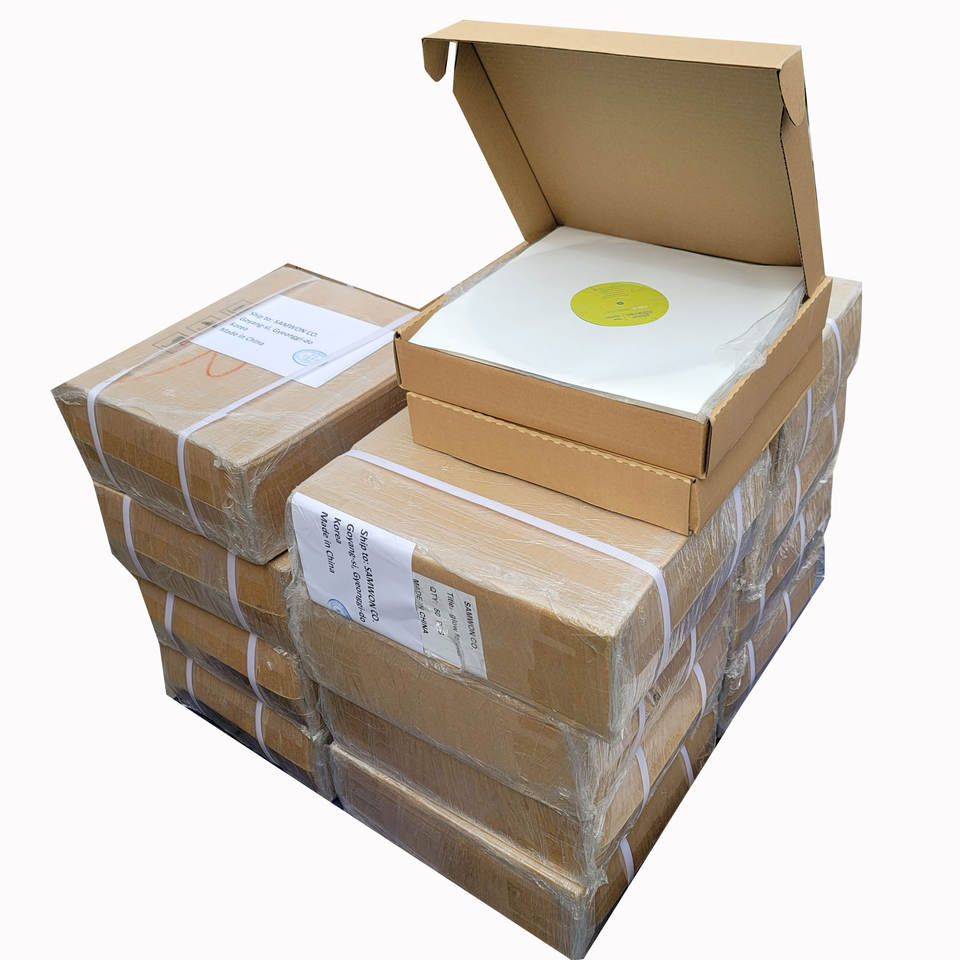 Each record is packed in an unprinted inner sleeve polylined, then into a 350gsm cardboard jackets or gatefolds, and then into a cello bag or shrink-wrapped.
