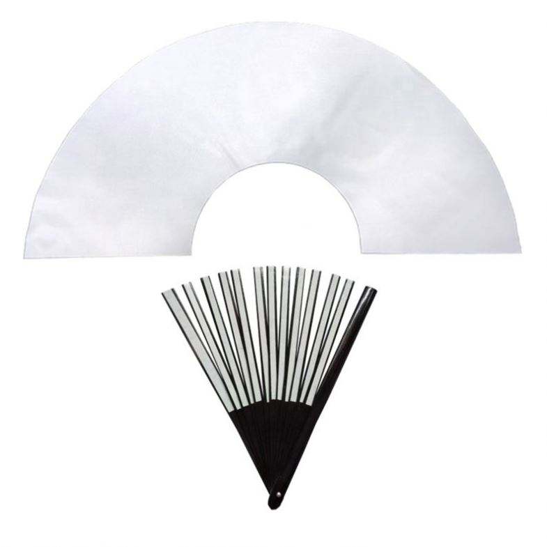 Promoción: Abanico de mano musical plegable de 13 pulgadas, estilo ángel, clásico KONGFU, para bricolaje, arte folclórico, con varillas de plástico, de poliéster, en blanco para sublimación