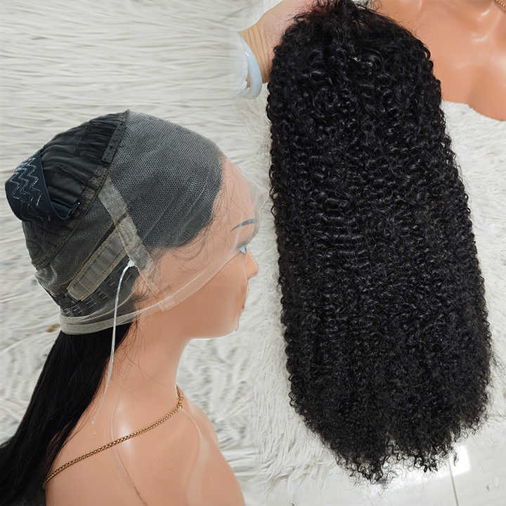 Promoción 68$ Letsfly Pelucas de Encaje 360 Invisibles Ajustables de 14-28 Pulgadas, Cabello Humano Natural Rizado Kinky con Baby Hair, Pelucas Lisas