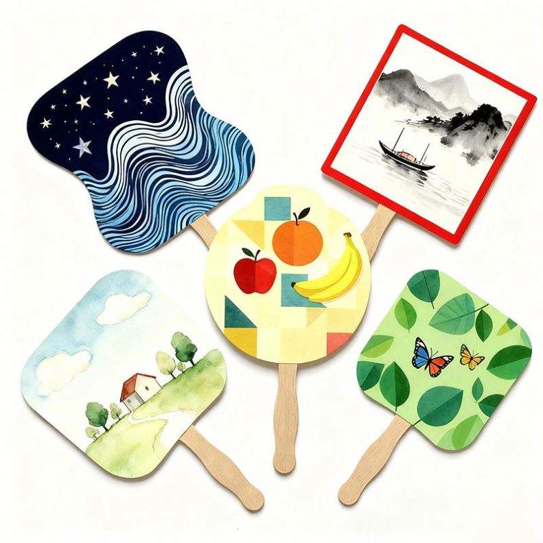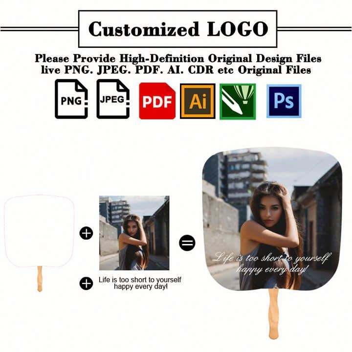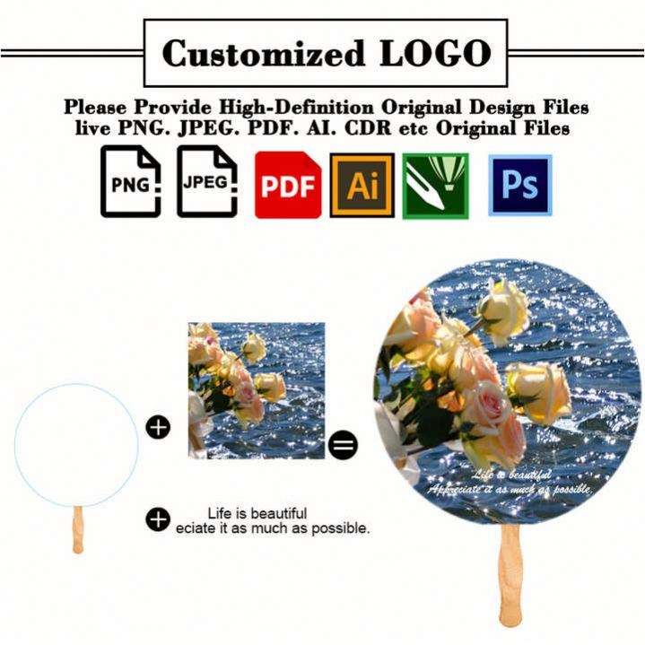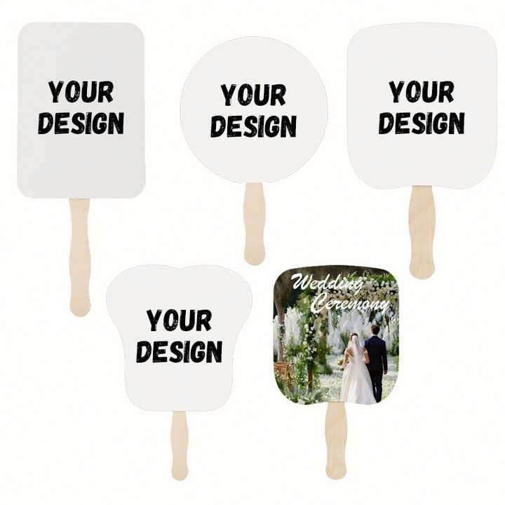Abanicos de Papel con Mango de Madera Personalizados con Logotipo Impreso a Doble Cara, Abanicos en Blanco para Sublimación, Regalo Promocional para Actividades Empresariales o de Iglesia