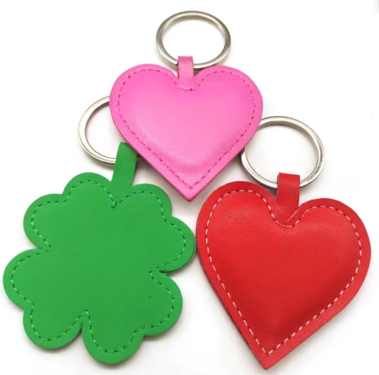 Regalo Promocional, Llavero de Cuero de Alta Calidad, Llavero con Logotipo Personalizado, Color Azul Cielo, Forma de Corazón