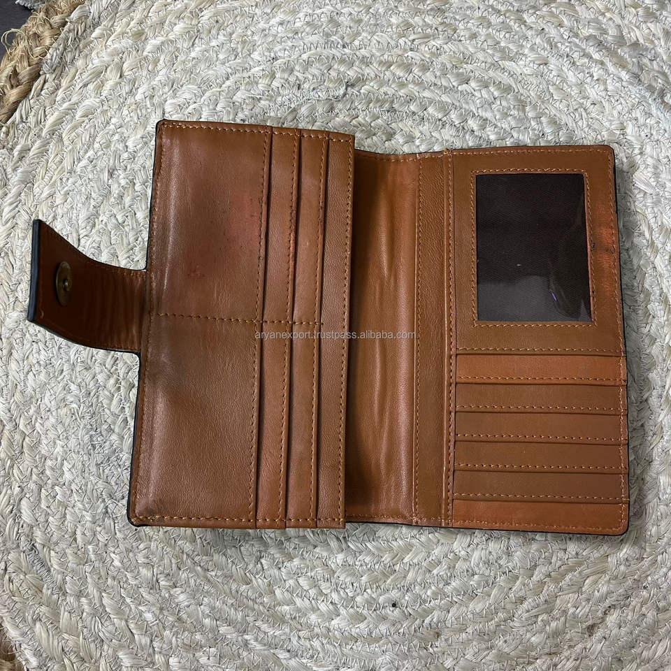 Regalo Promocional, Nuevo Diseño, Cartera de Cuero Hecha a Mano con Cierre de Broche, Cartera de Cuero Genuino de Vaca, Tarjetero, Bolso de Mano Tipo Clutch para Mujer