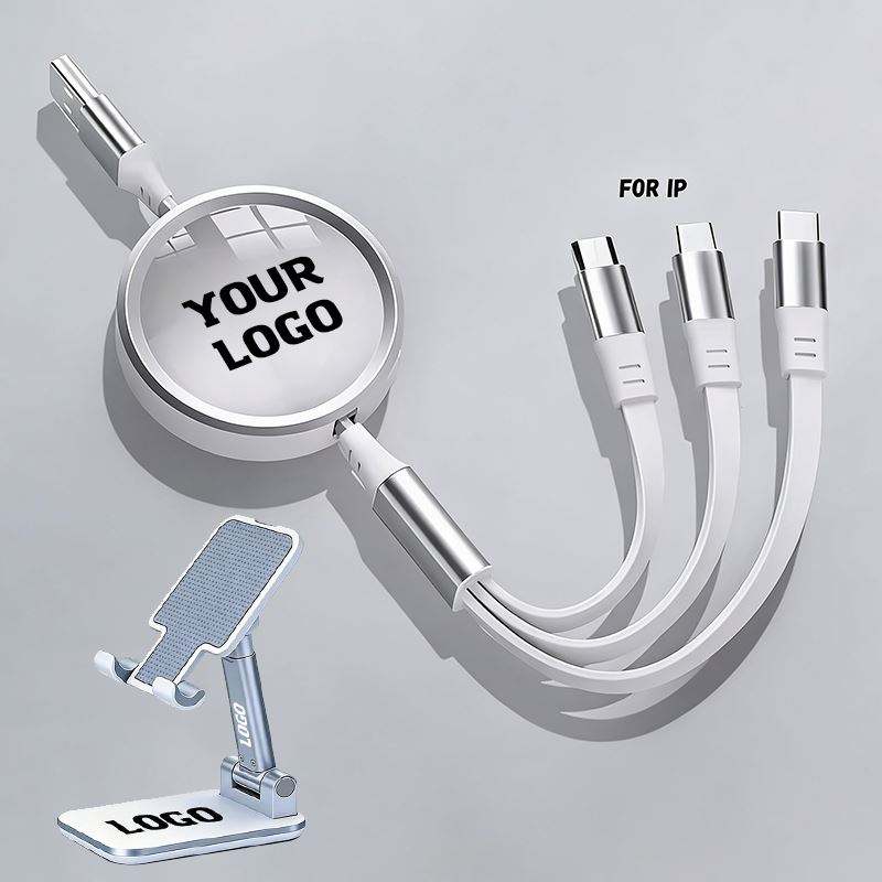 Cable de Carga Retráctil de Triple Puerto para Dispositivos Micro y USB C, de Silicona Plana, Ideal para Viajes, Regalo Promocional