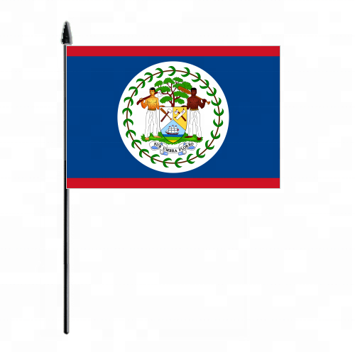 Promoción Mini Bandera de país de Belice personalizada al aire libre ondeando a mano Bandera de palo de plástico