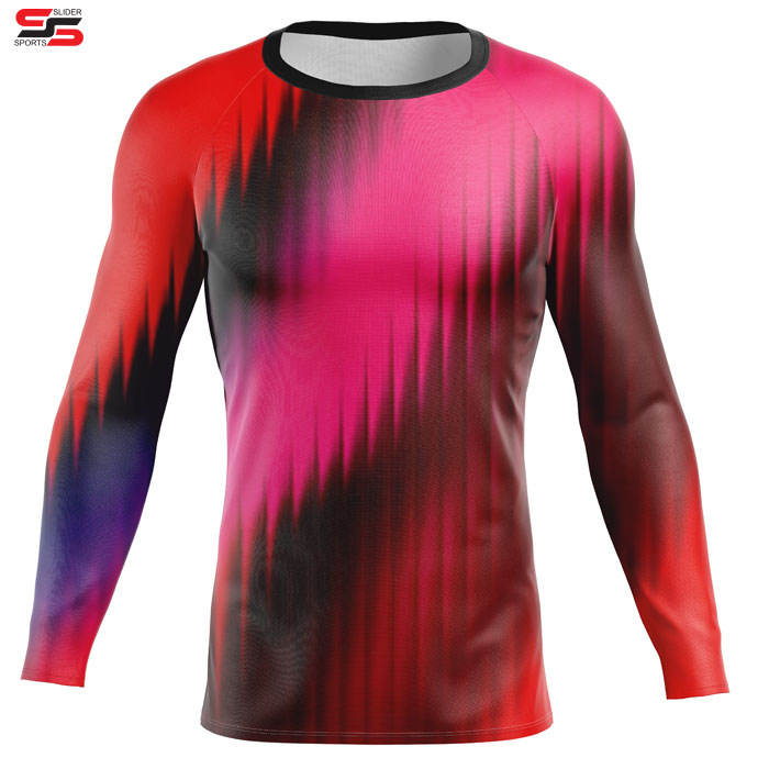 Promoción Sublimación Impreso Spandex Bjj Secado rápido Hombres Camisa de compresión Manga larga Deportes Baselayer Running Dry Rash Guard